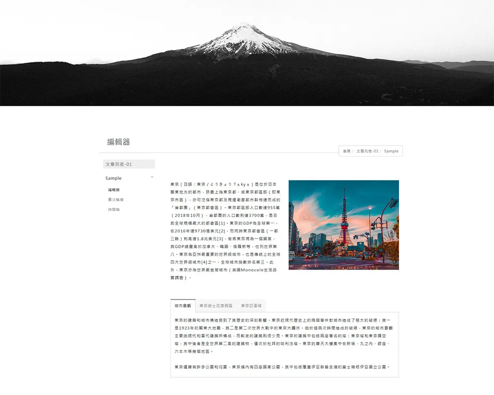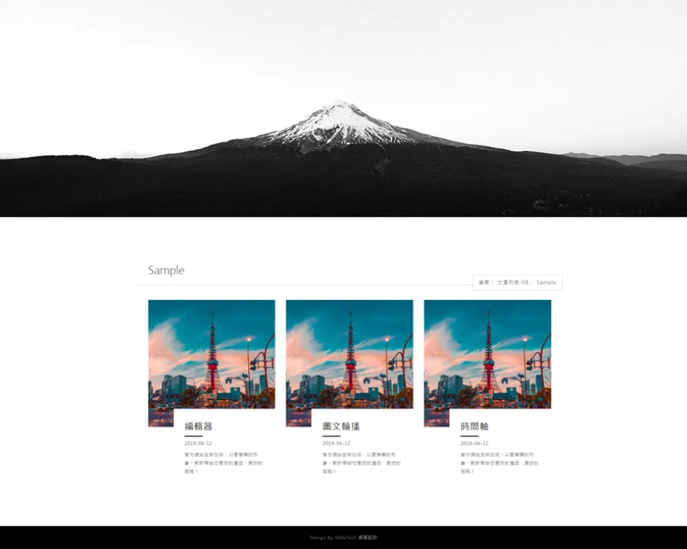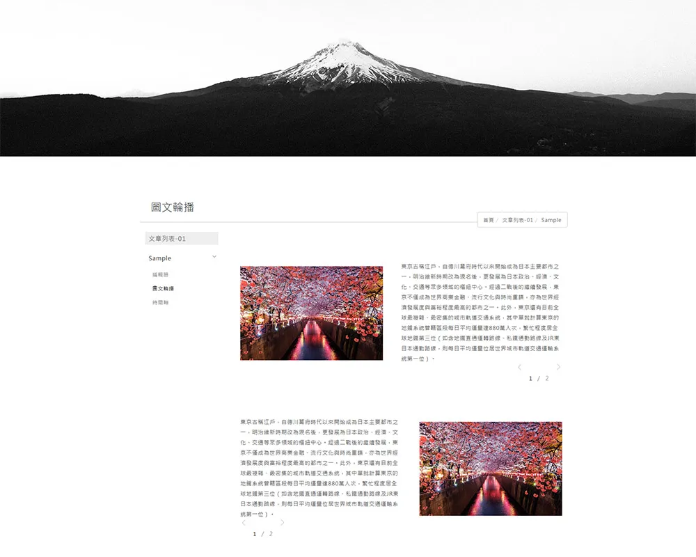 ※ 最上方山圖為內頁Banner大圖位置示意,後續可自行放置、更換